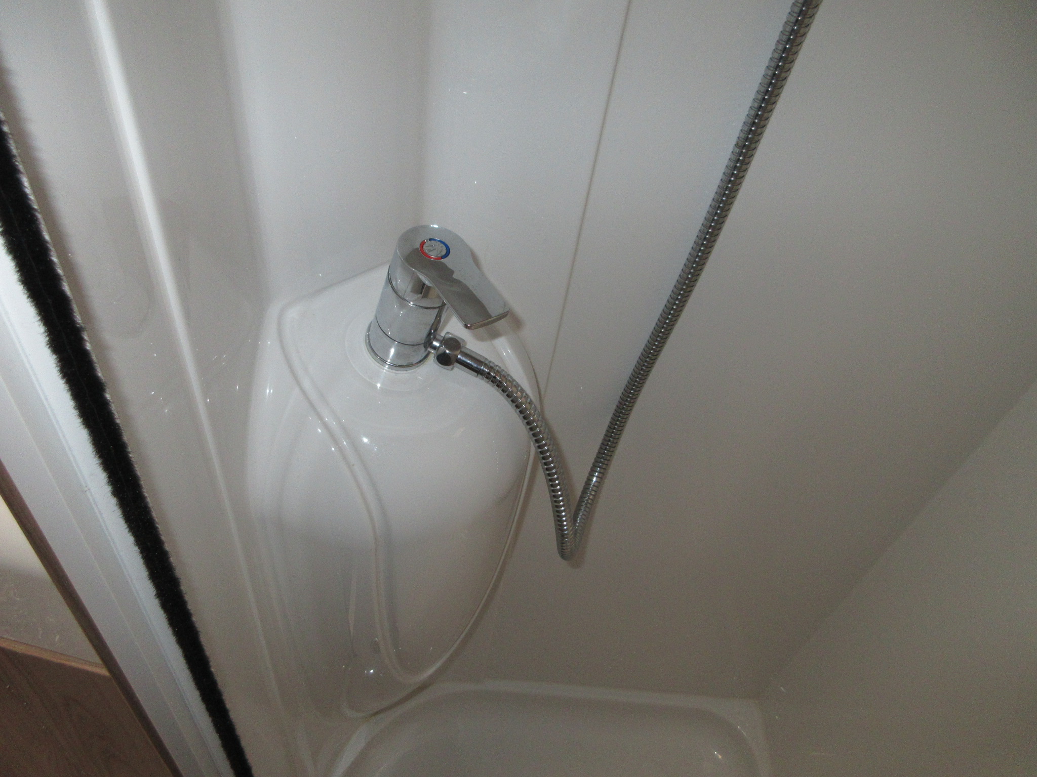 Layout: Fixed single beds, end washroom with stand-alone shower